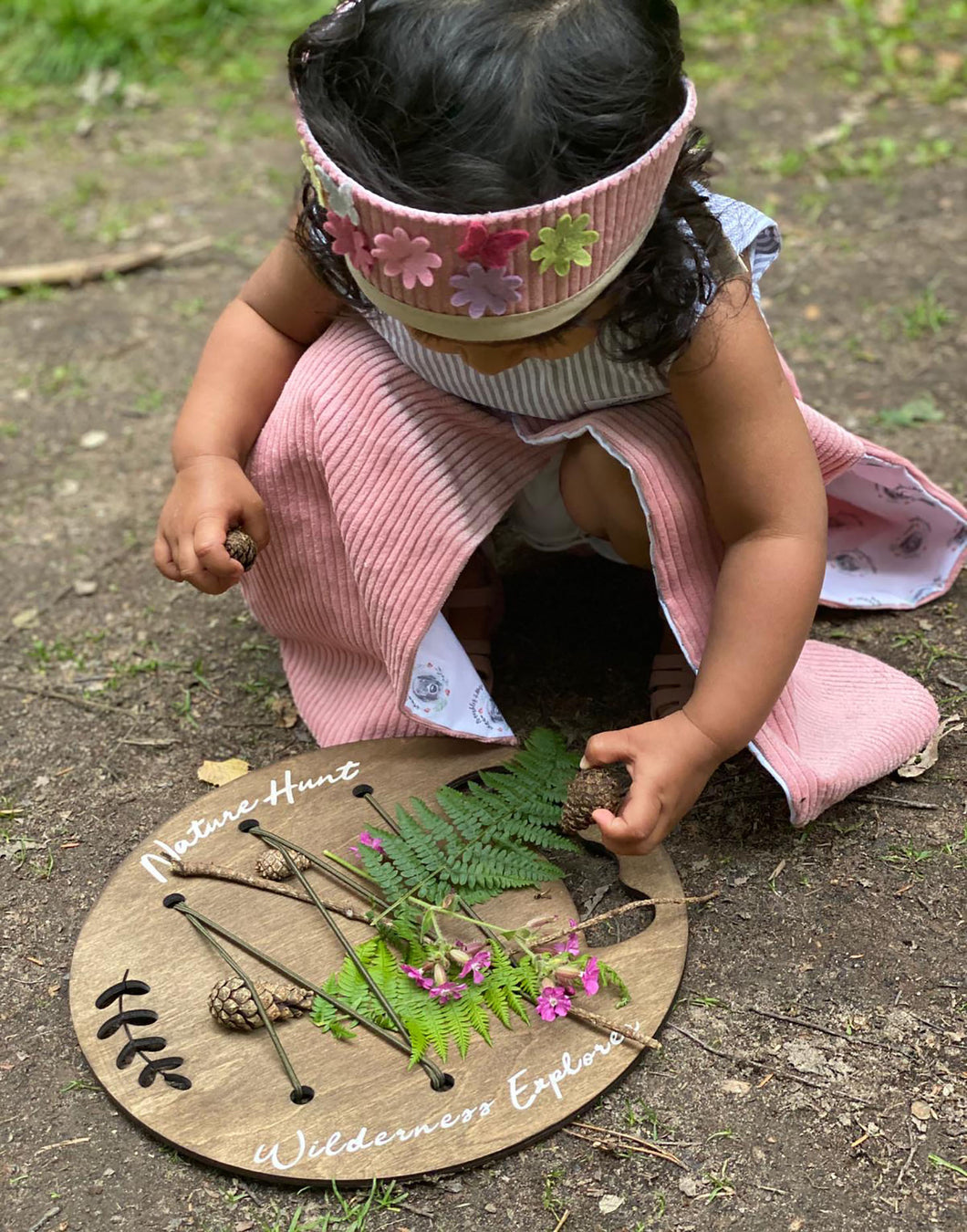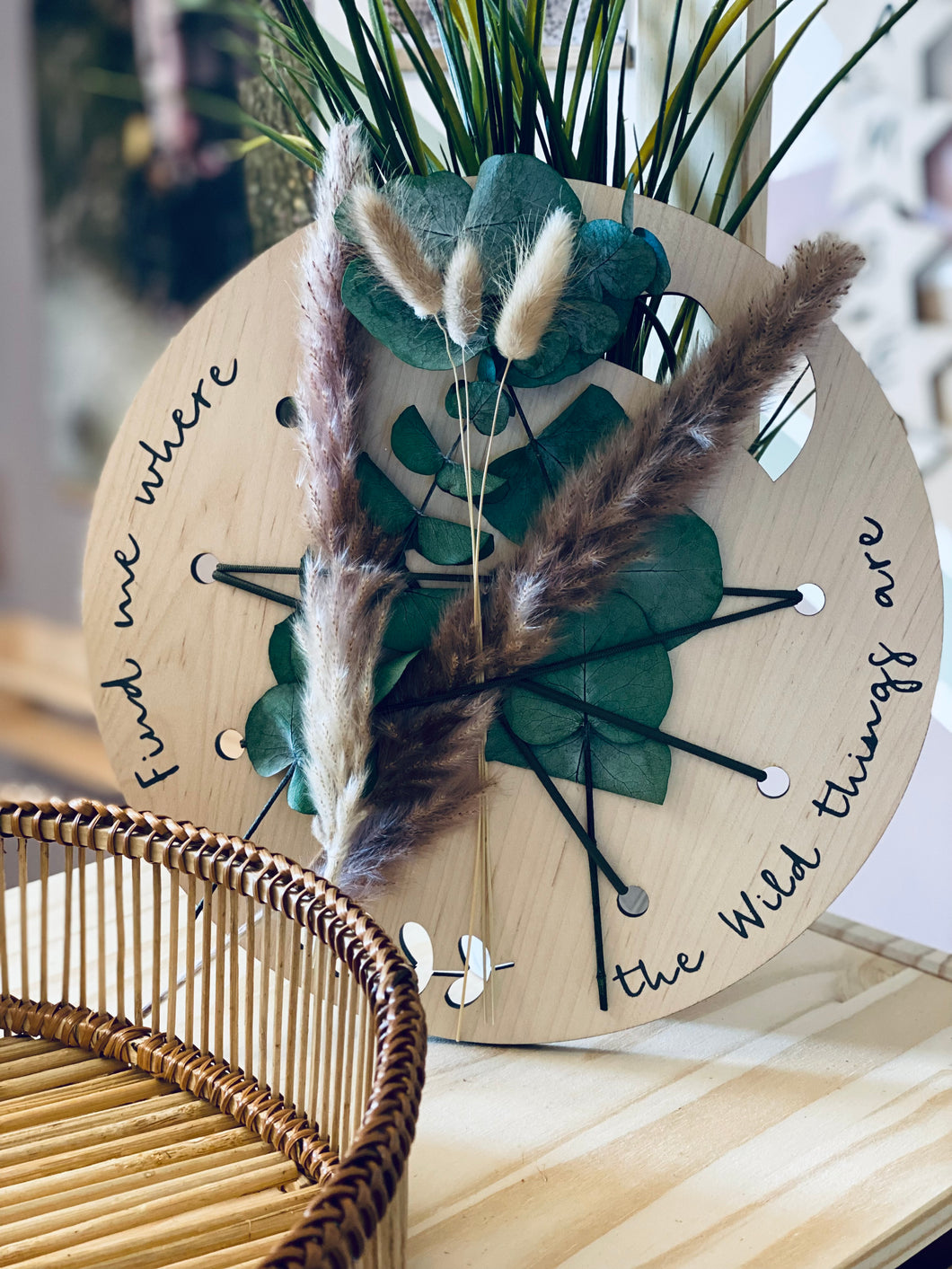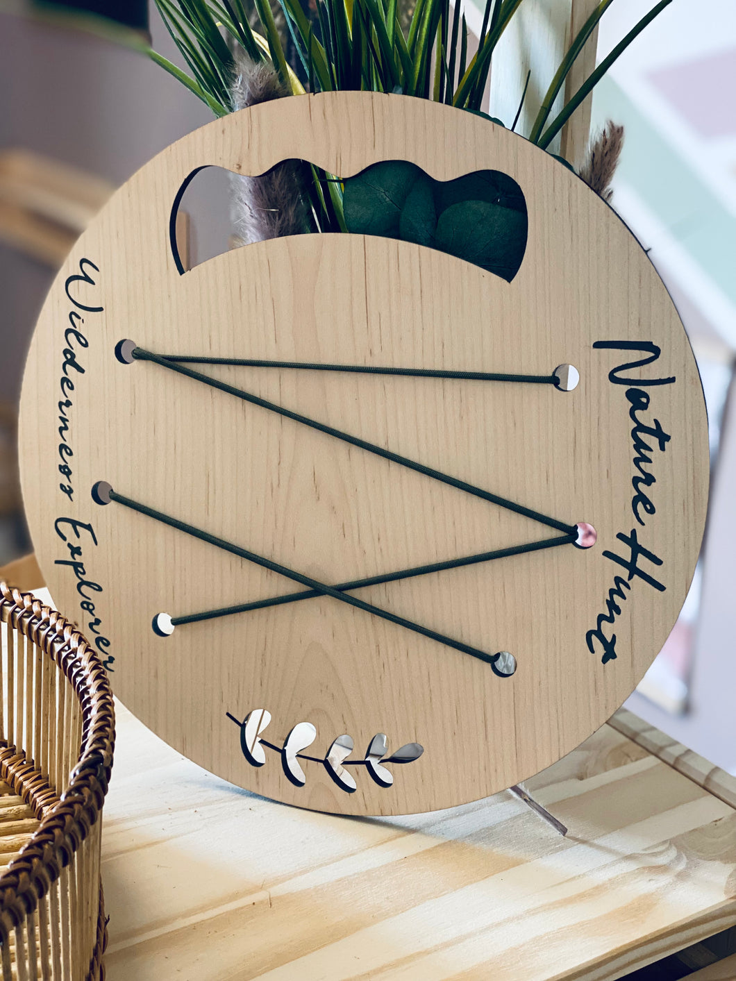 For your little treasure hunters, wilderness explorers, wildflower collectors. Here is our brand new Nature collector disc! Complete with dark forest green elastic ready for threading, stained dark natural raw birch or plain wooden disc. With the words ‘Nature Hunt’ and ‘Wilderness Explorer’ hand painted on both sides. The plain disc has ‘find me where the wild things are’ on one side.