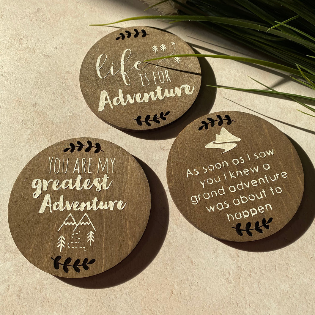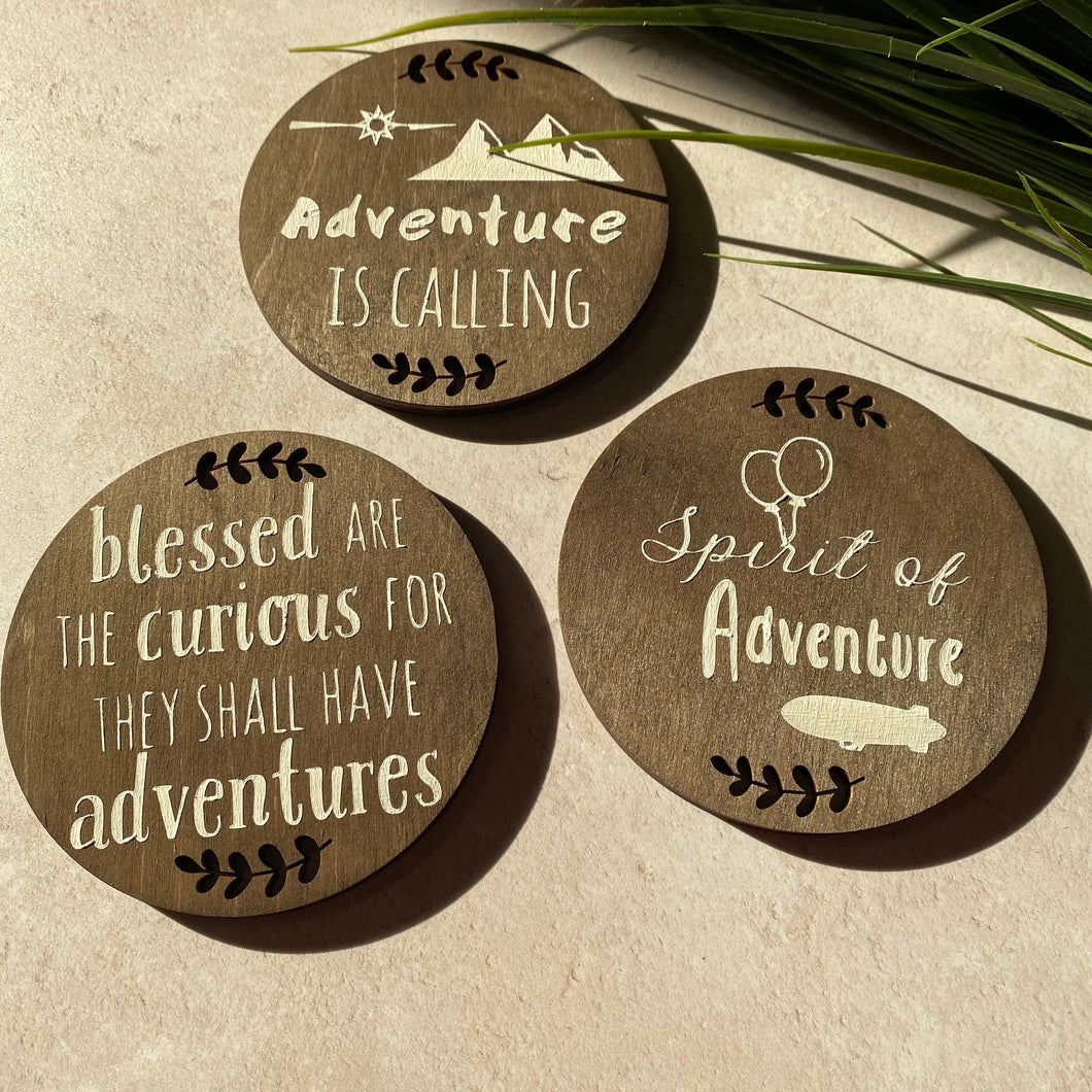 includes: Spirit of Adventure • Life is for Adventure •  Adventure is calling • Blessed are the curious for they will have adventures • You are my greatest adventure • As soon as I saw you I knew a grand adventure was about to happen