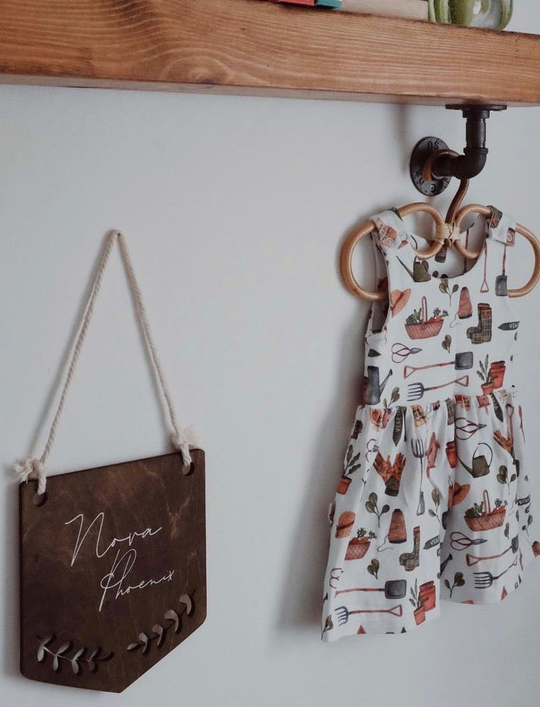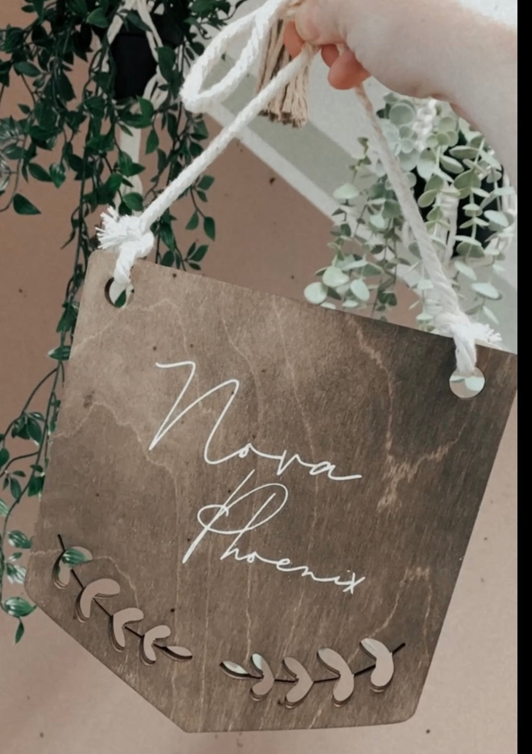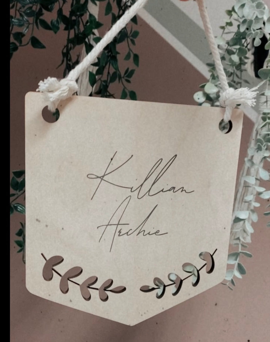 Approx 200mm height banner plus 200mm+ hanging drop complete with Macrame rope.
